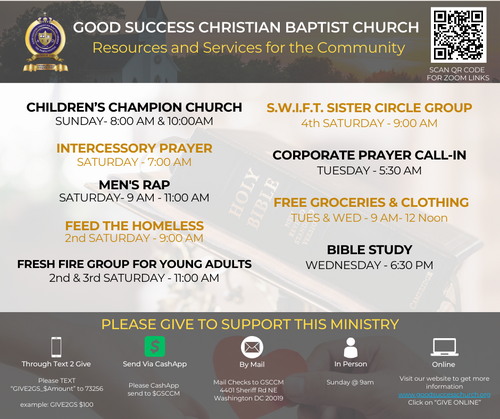 We believe that you too will "Experience the Love and Love the Experience" at Good Success Christian Baptist Church, as you develop your own testimony of how Jesus Christ reached you and help you to grow in your faith, family, finances, fitness, and future !